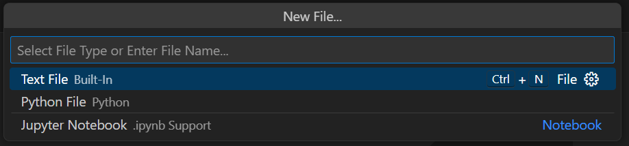 You will be prompted to select a file type, for example a text file, a python file (.py) or a jupyter notebook (.ipynb).